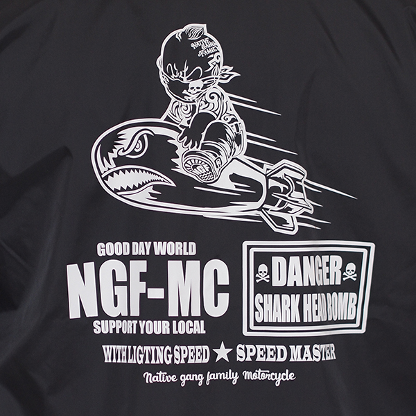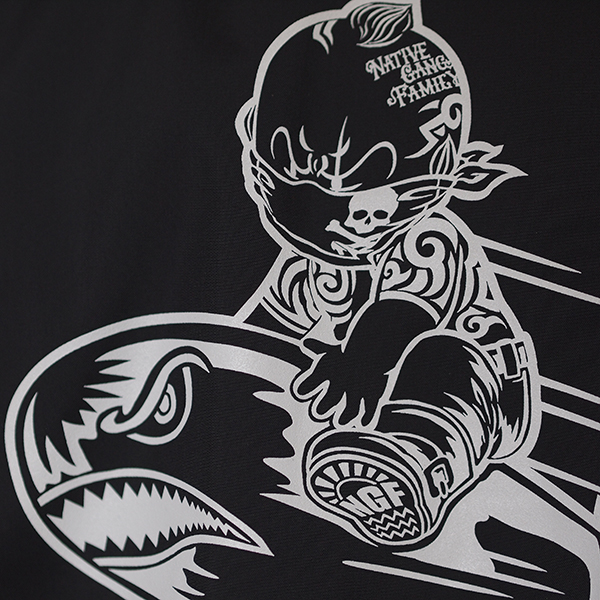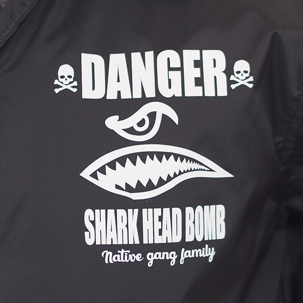 フロントとバックにシャークヘッドのプリントを施しました。