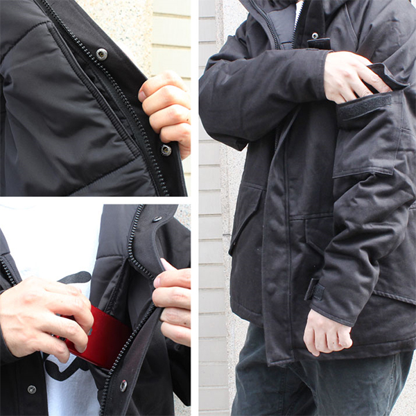 中綿を厚く入れ、表がすっきりとするように、裏地をキルティングした温かいジャケットです。裏地がとても暖かいので、中は薄着でもOKです。
