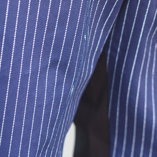 フロントとバックで生地を替え、色々な着こなしを楽しめるデザインです。