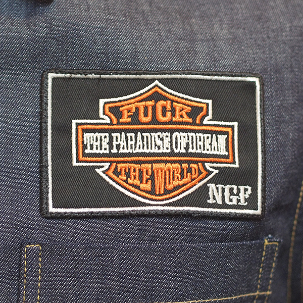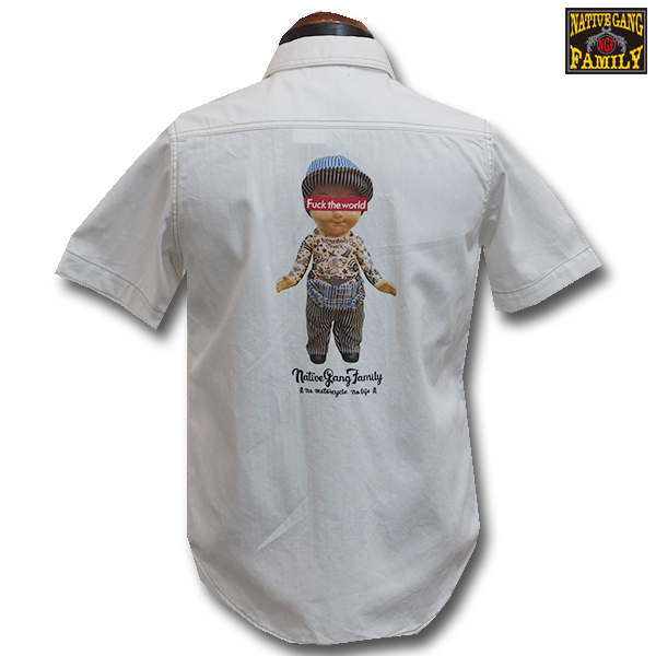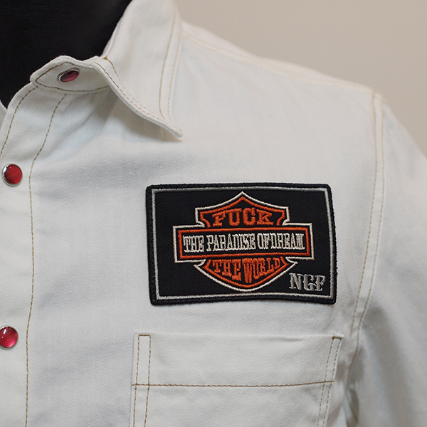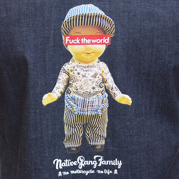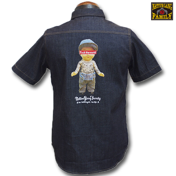 バックにリアルベイビーをインクジェットプリントしたデニムシャツ。