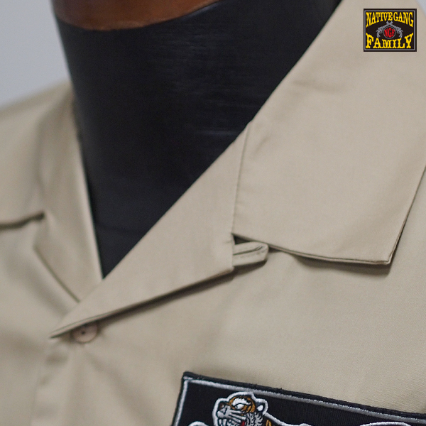 ツイル素材を裏使いし、耐久性をそなえ、かろやかさと光沢感がポイントの開襟シャツです。