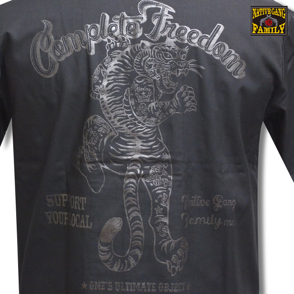 タトゥーをしたタイガーをデザインし、バックプリントに。
