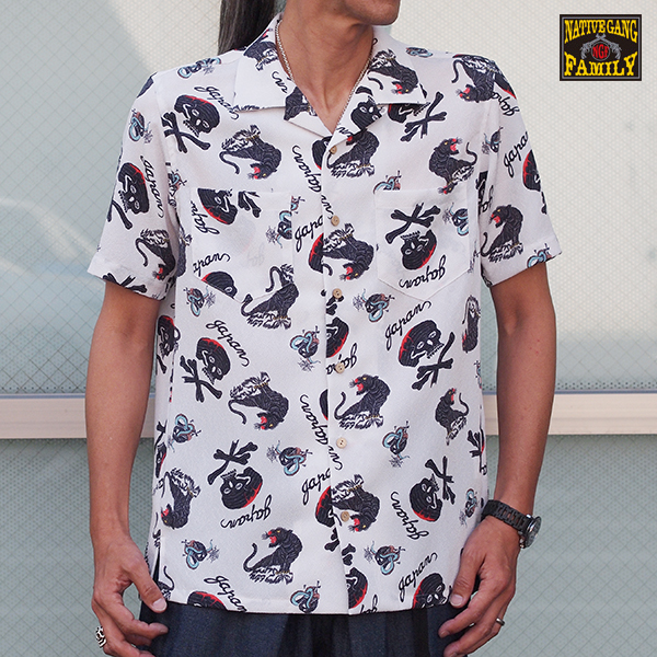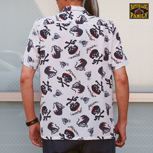 生地から作ったNGFらしさ満載の縮緬総柄半袖シャツ。
