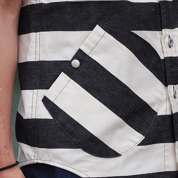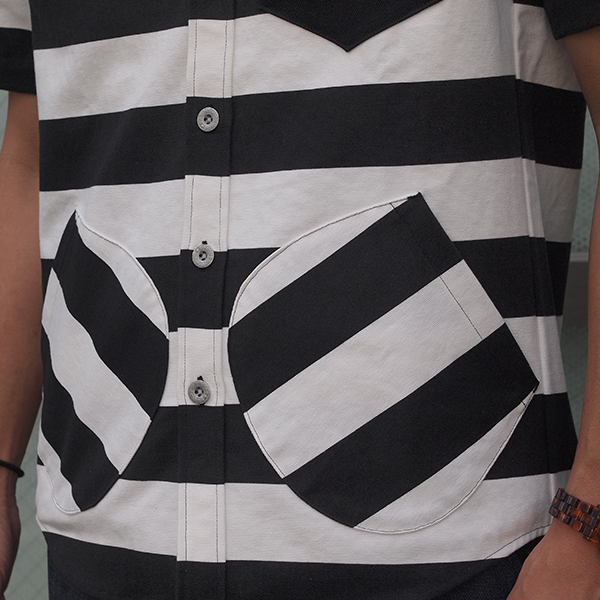 フロントには胸ポケットのほか、フロント身頃に左右ポケットがあり、カーブを描いた特徴的な形のポケットもポイントです。