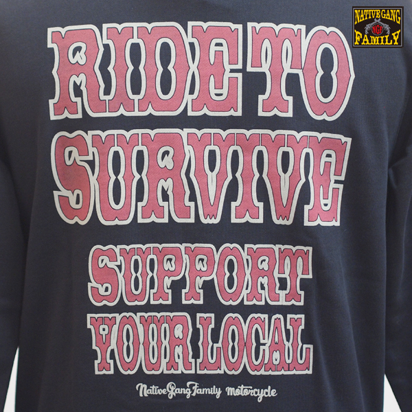 「RIDE TO SURVIVESUPPORT YOUR LOCAL」のロゴデザイン。
