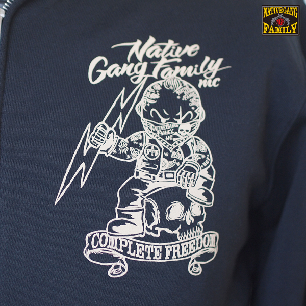 イナズマを持ち構えたタトゥーベイビーを描き、