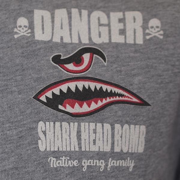 フロントにはワンポイントでシャークフェイスをカラーでプリント。
