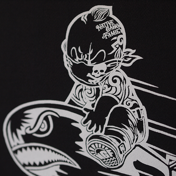 シャークフェイスとタトゥーベイビーを合わせたユニークなデザイン。