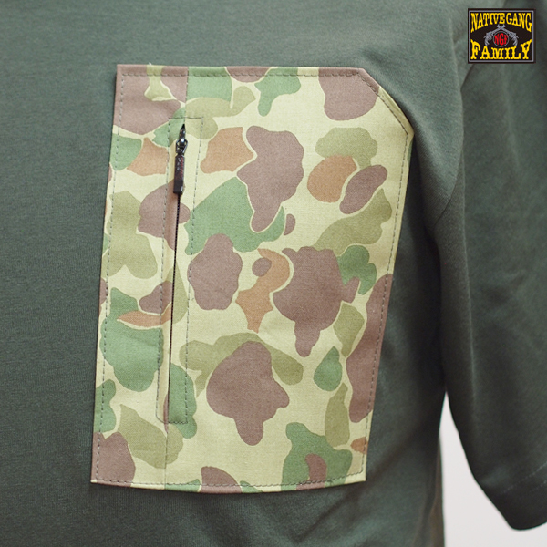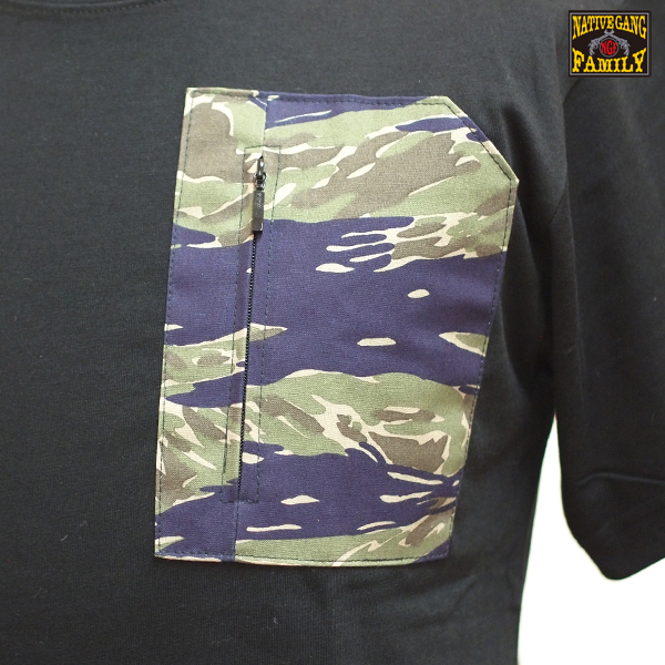 胸ポケットはブラックボディにはタイガーカモ柄、
