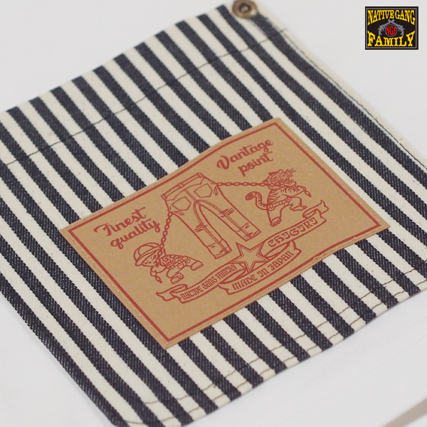 ホワイトボディにはストライプ生地でポケットを作りました。