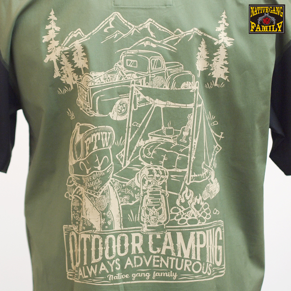 バックにはNGFらしさとアウトドアらしい絵柄を大胆にプリント。