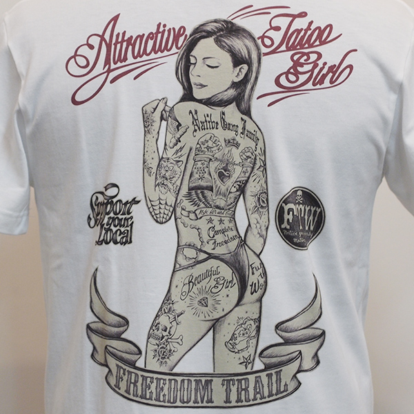 手描きビキニタトゥーガールインクジェットTシャツ。