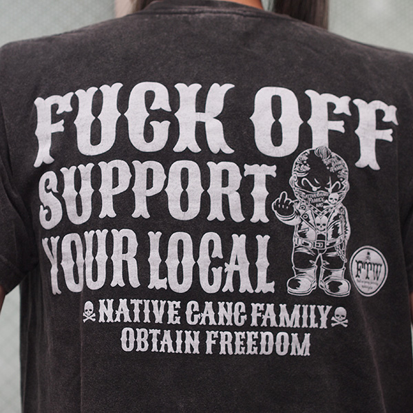 バックに大胆なロゴとワンポイントタトゥーベイビーをデザインしました。
