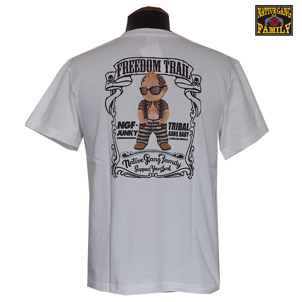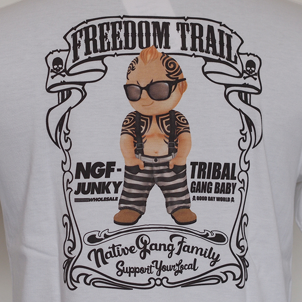 NGFのボーダーパンツをカッコよく着こなしたベイビーがバックプリントに。