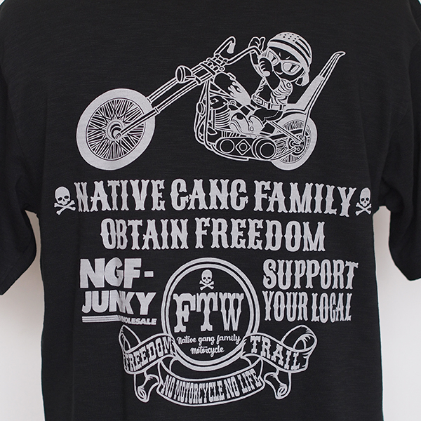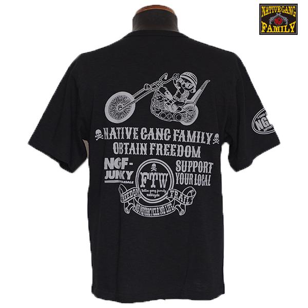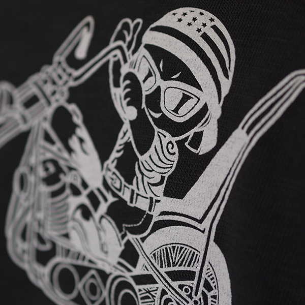 チョッパーに乗ったベイビー。ロゴと合わせてカジュアルに。