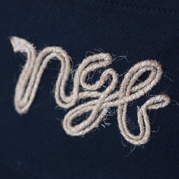 胸ポケットにNGFロゴのロープ刺繍を施しました。