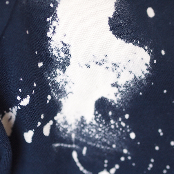 ペンキを塗ったようなタッチを抜染加工で表現したTシャツ。