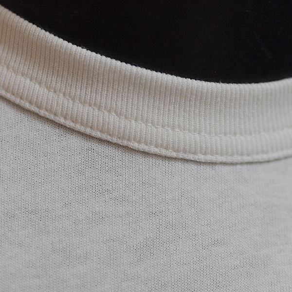 オープンエンド糸ならではのドライでタフな風合いが魅力の一枚です。空気の力で撚り合わせた糸は、自然なムラ感としっかりとした厚みを持ち、洗濯を重ねても型崩れしにくい耐久性があります。着るほどに硬さがほどけて体になじみ、独特の味わいが楽しめます。