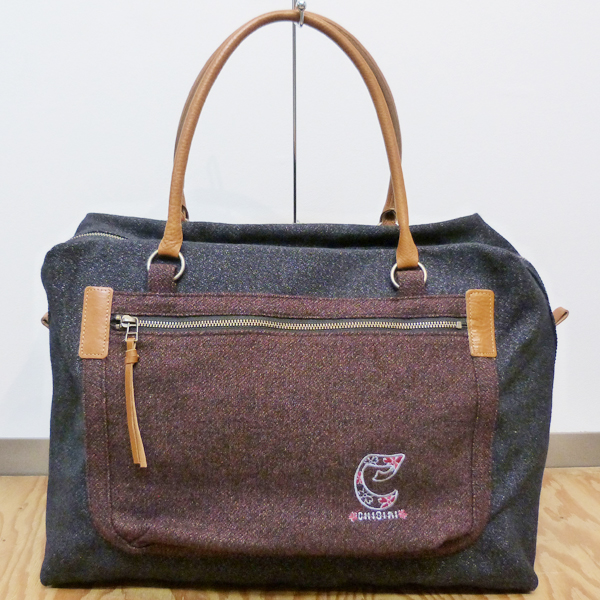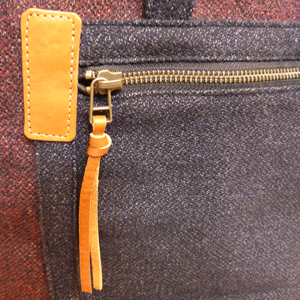 持ち手やファスナー引手など、レザーを使用し、高級感アップ。ウール地にレザーがとてもよく合い、色のアクセントにもなっています。
