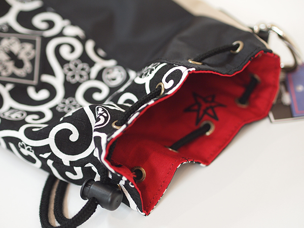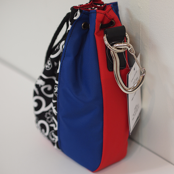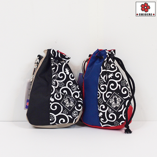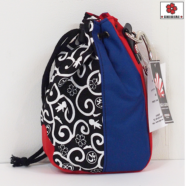 CHIGIRIオリジナル唐草生地とナイロン生地を合わせた巾着型ウエストポーチ。