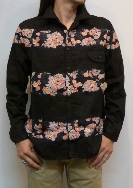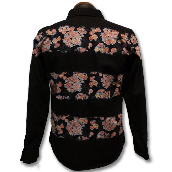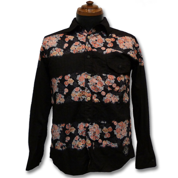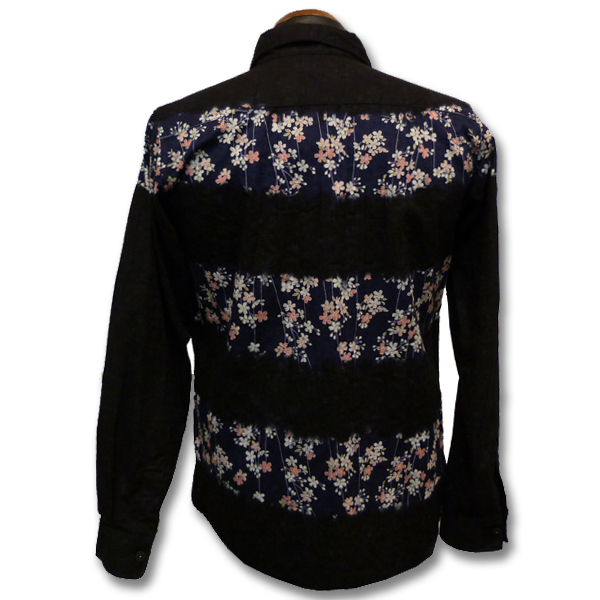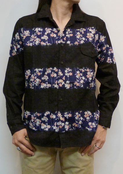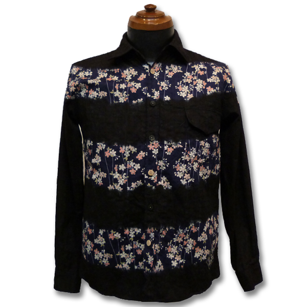 花柄、桜柄の総柄シャツに、ボーダー染めを施した和柄シャツ。
