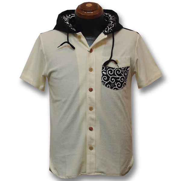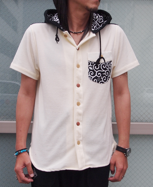 パイル地のフードシャツ。