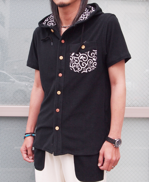 フード内側には、CHIGIRIオリジナル唐草柄生地を配しました。