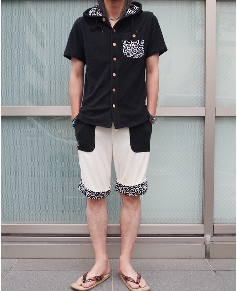 同じパイル地ショートパンツと合わせれば、セットアップでかっこよく決まります。
