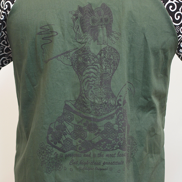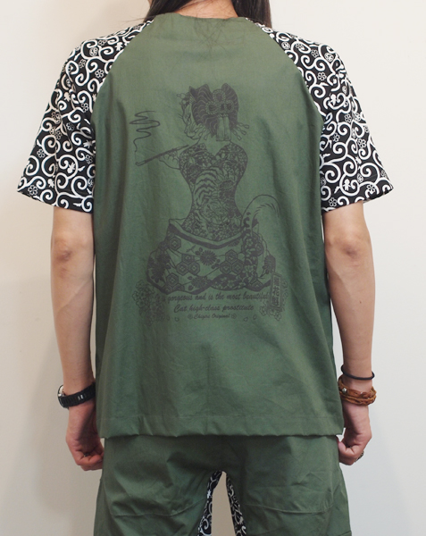 袖はCHIGIRIオリジナル唐草柄生地で切替したインパクトのある一着です。