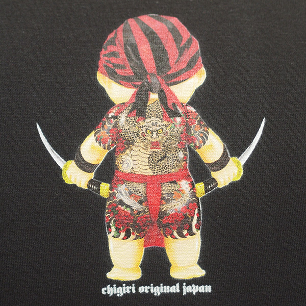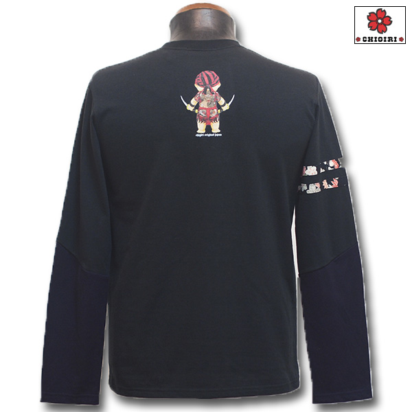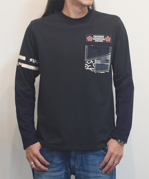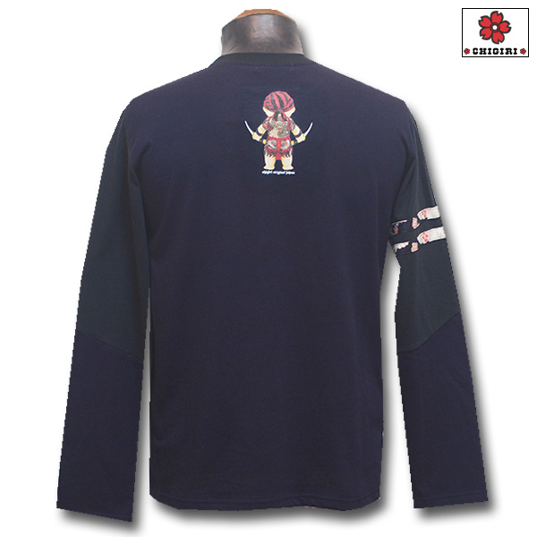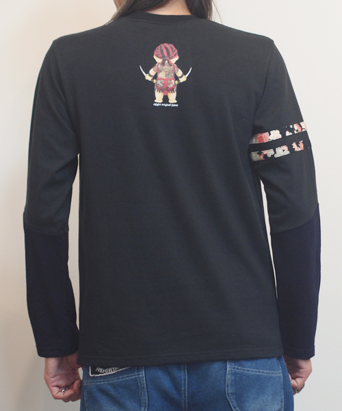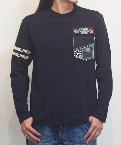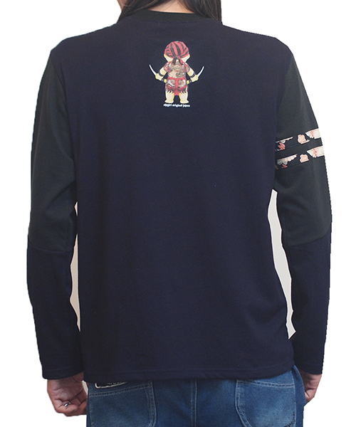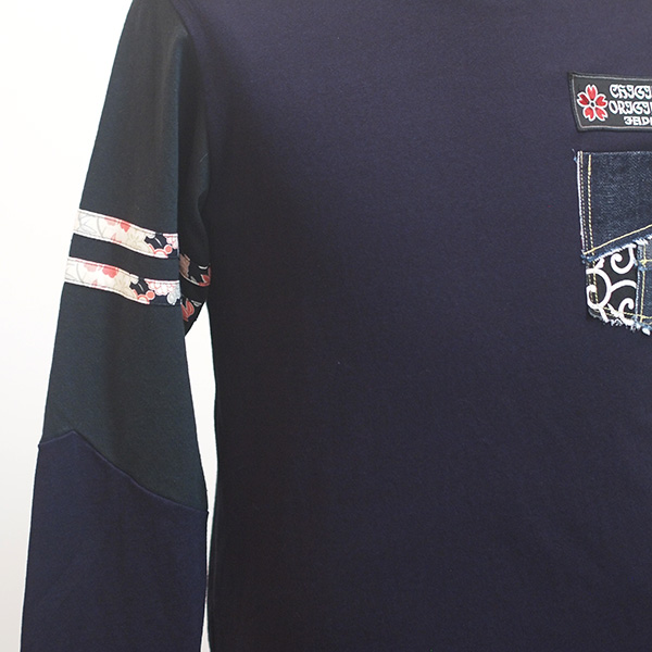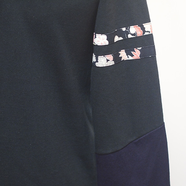 ボディからつくりこみ、袖はブラックとインディゴで2色切り替わり、更に右袖には和柄で2本のラインを入れました。