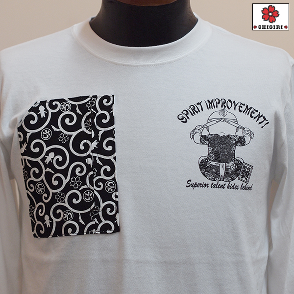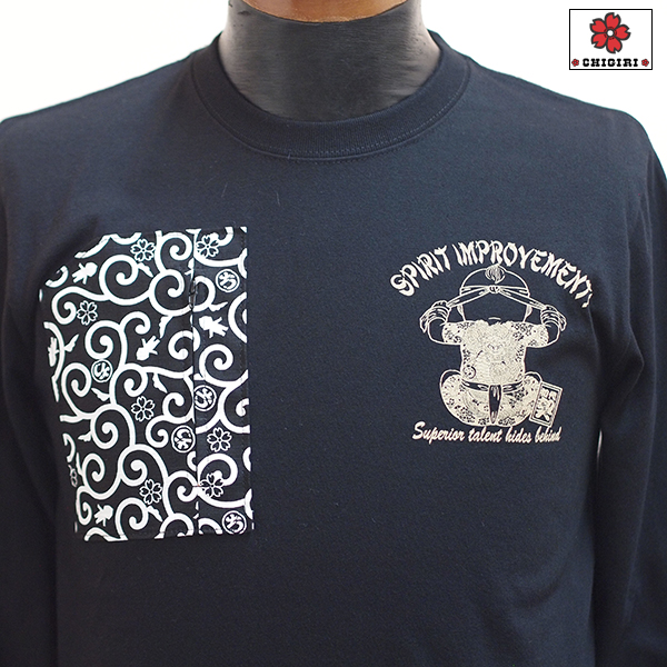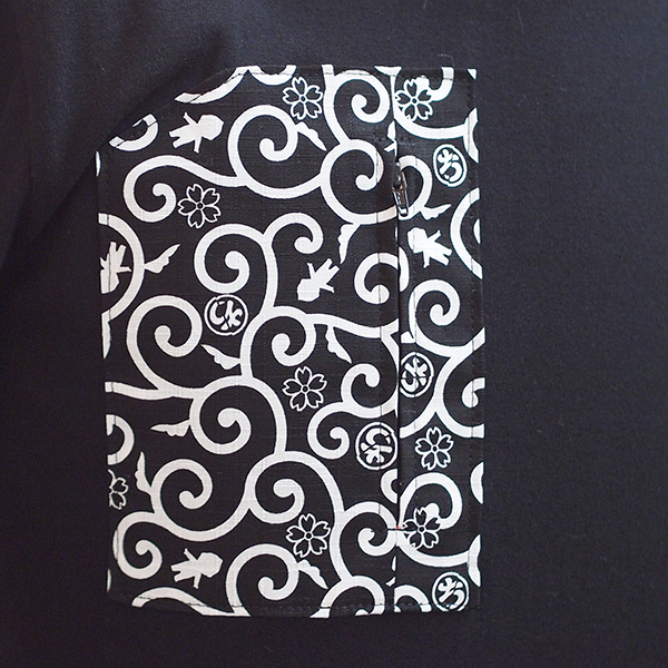 フロントはオリジナルちぎり唐草柄生地でファスナー付きポケットを作り、