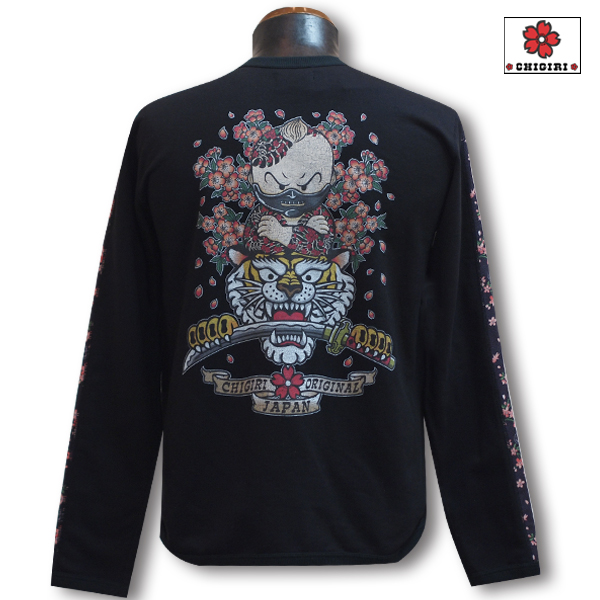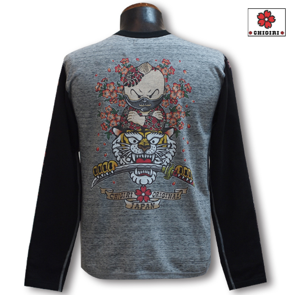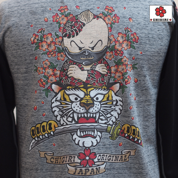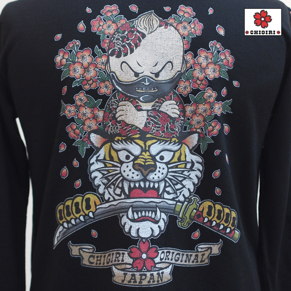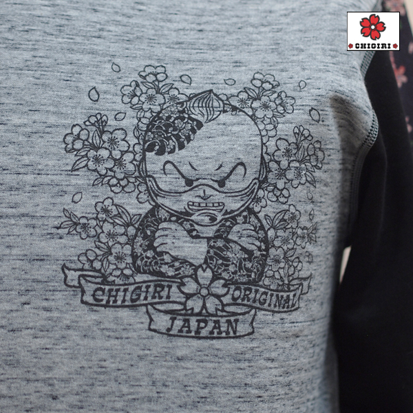 CHIGIRIの人気キャラクターシリーズから。甲冑をはめたちぎりちゃんデザインのロンTです。