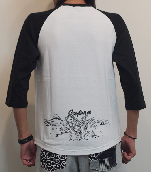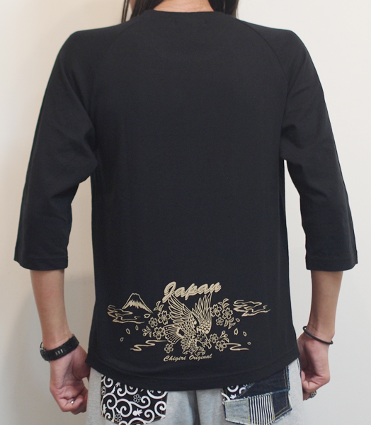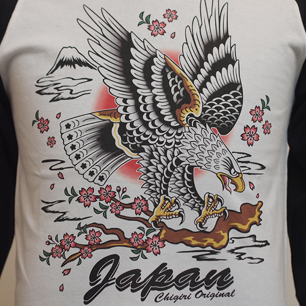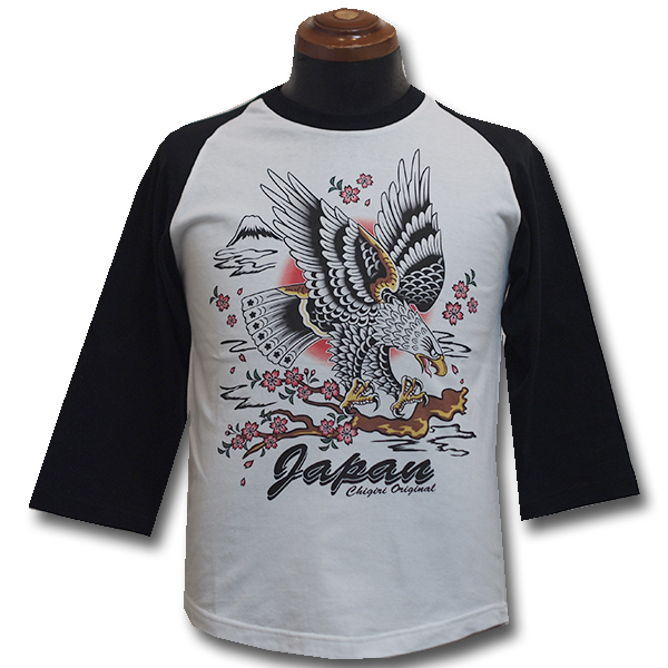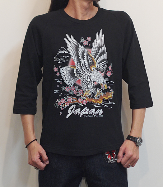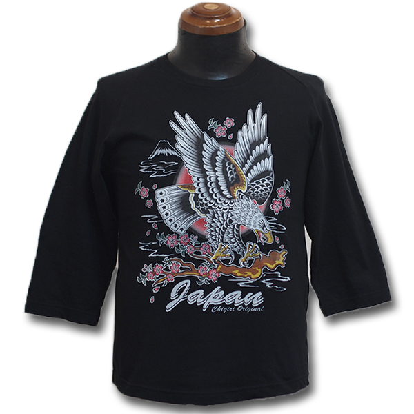 フロントに、鷲のデザインをインクジェットプリントした7分袖Tシャツ。