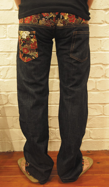 ウエスト部分にも特徴があり、一見スーパーローライズパンツに見えますが、股上は普通にウエストまであり、ベルトループが下に付いているので、着用するとスーパーローライズに見える仕組み。最高の履き心地です!!ウエストは紐でしぼれます。