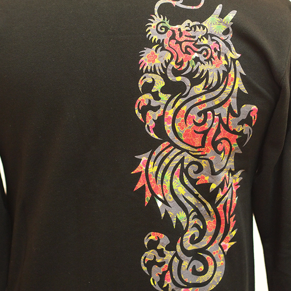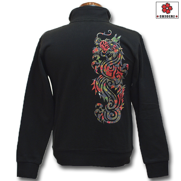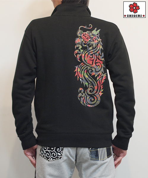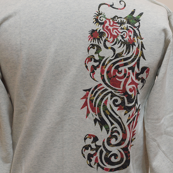 トライバル龍に桜模様を散りばめたジップスウェットです。