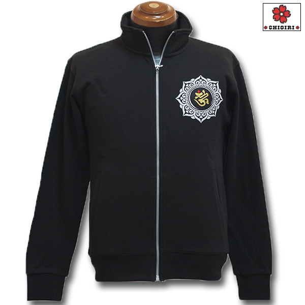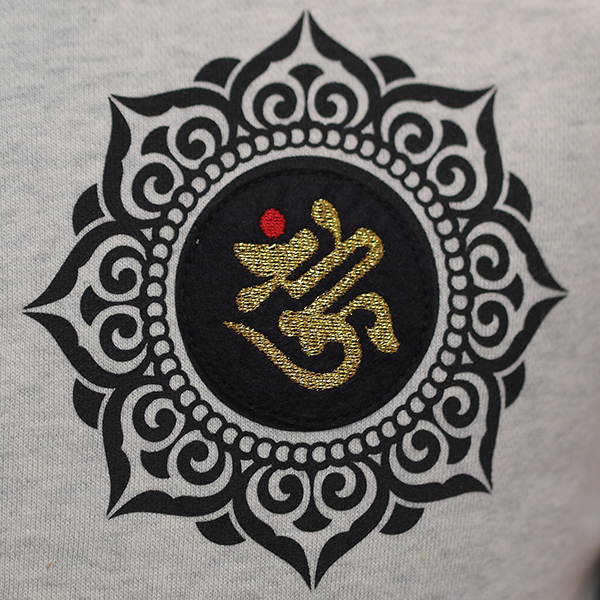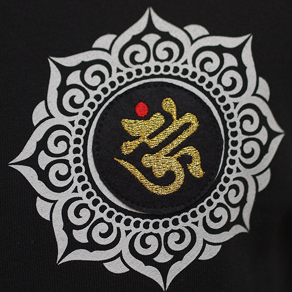 梵字風「契」文字は刺繍、周りの枠はプリントになっています。