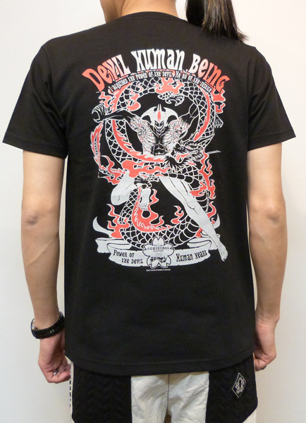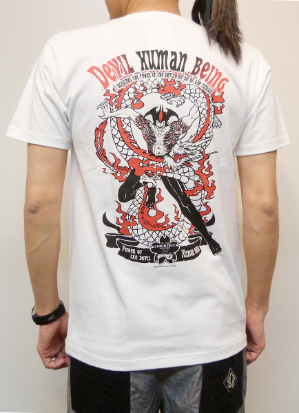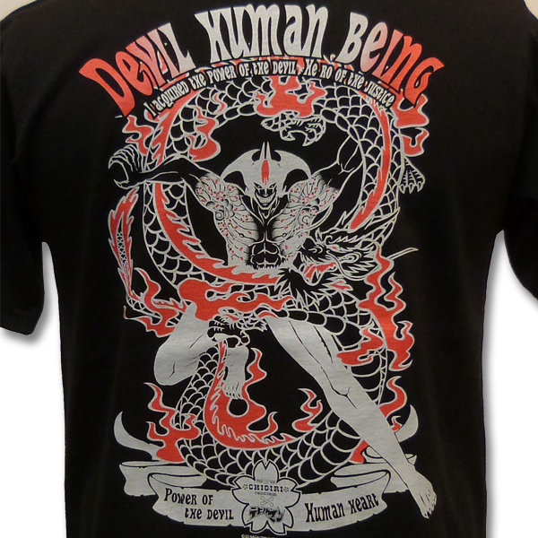 デビルマンの体に巻きつく炎を纏った龍と闘っているデザイン