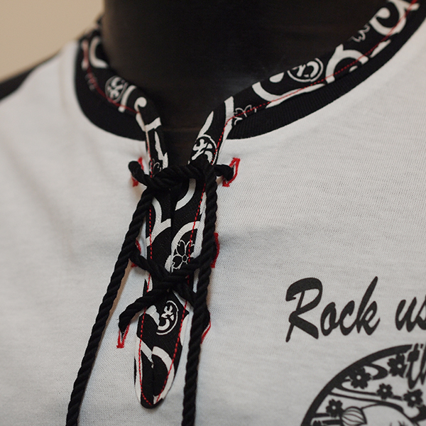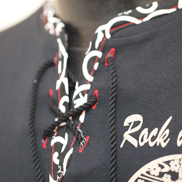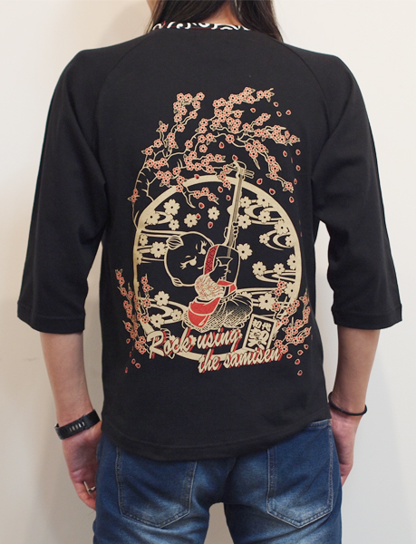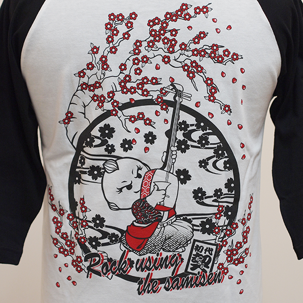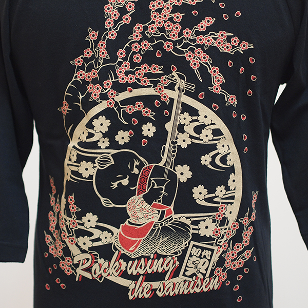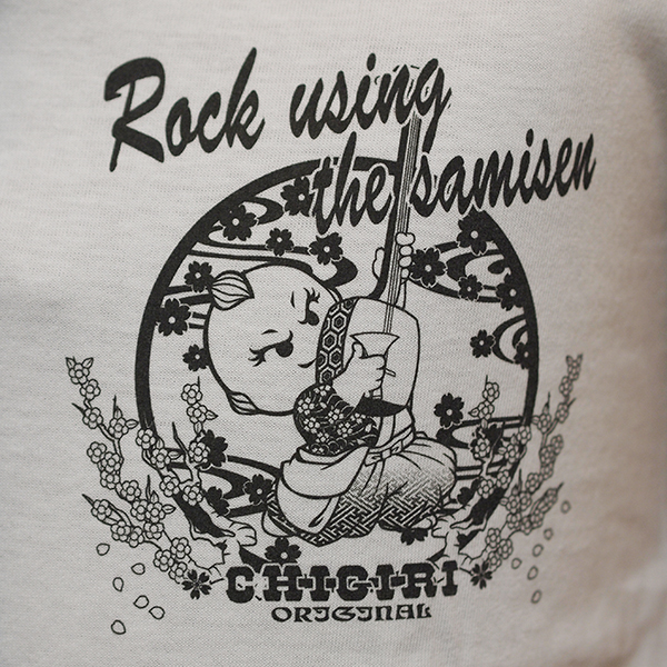 プリントは三味線をロックのように弾きこなす契ちゃんの姿をデザインしました。