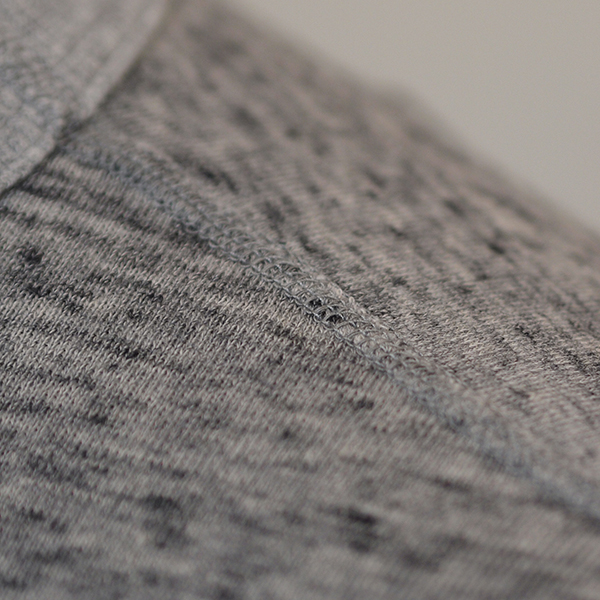 縫いしろがフラットな4本針の「フラットシーマ」によるステッチです。