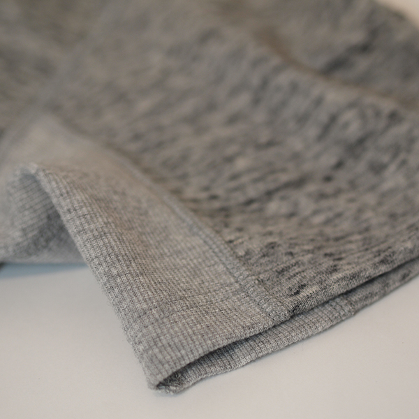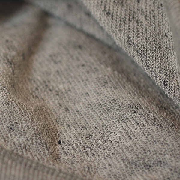 ミニ裏毛を使用したTシャツ。タオルのような感触でやわらかく、通常の裏毛生地よりループが小さく薄手になっているので、暑い日にも軽くさらりと着られます。