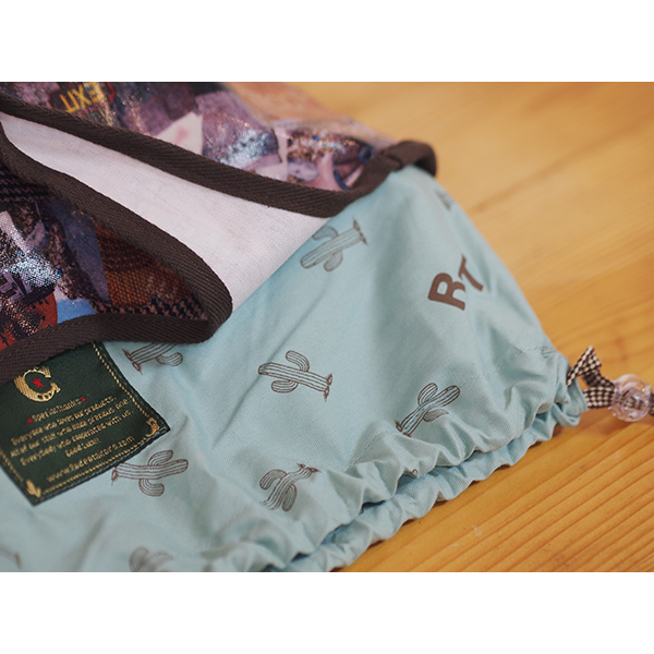 口部分は、巾着仕様。オリジナルサボテン柄生地で巾着に。
