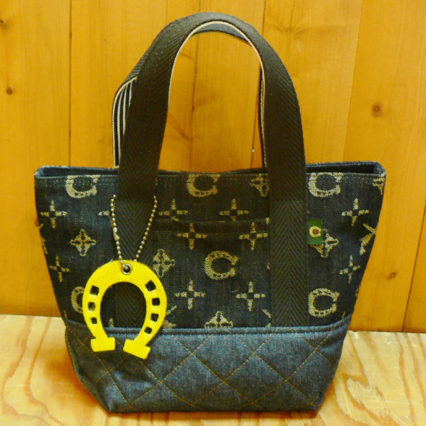 ベーシックな形のトートバック。ちょっと出かけるときに便利な小さなサイズで女性にオススメのです。お弁当を入れるのにも丁度良い大きさ。