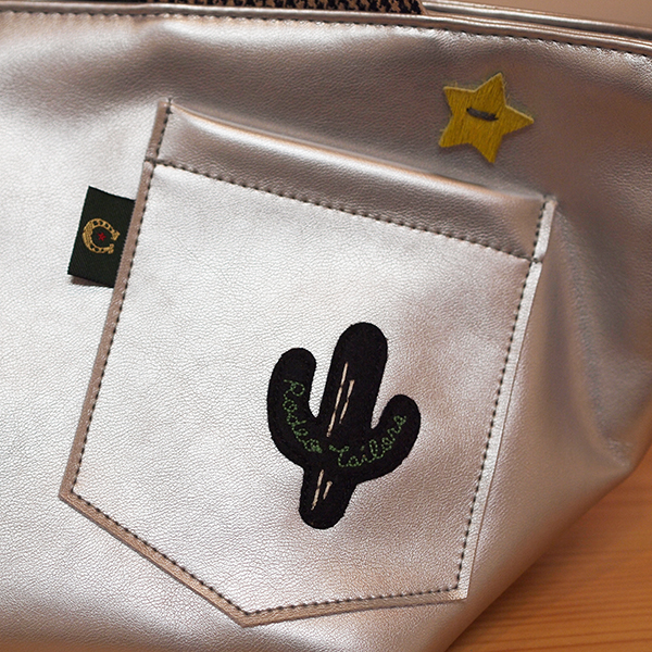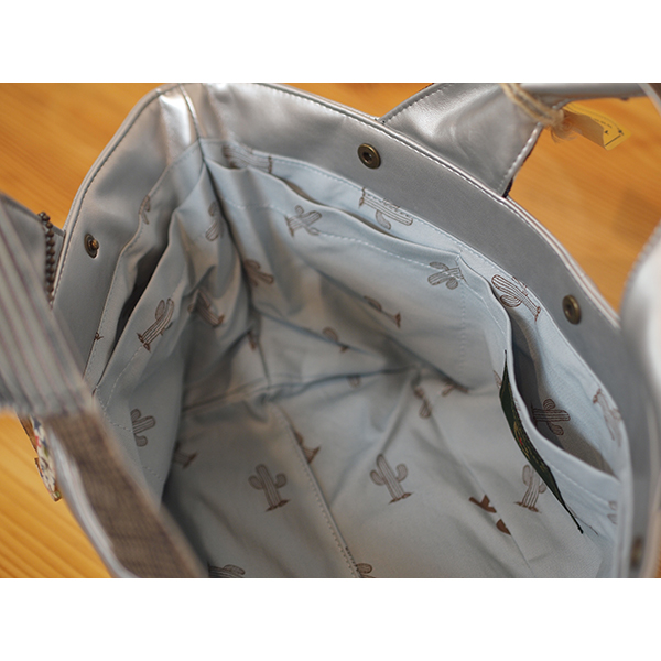 内張りはオリジナルサボテン柄リネン生地のブルーを使用。