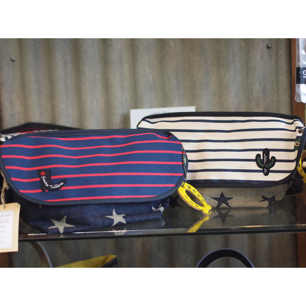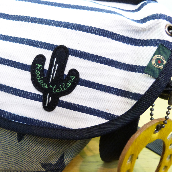 カブセ蓋には、スペインテープをつかい、ネイビー×レッドのボーダー柄にはブーツの、ホワイト×ブラックのボーダー柄にはサボテンの刺繍ワッペンがついています。