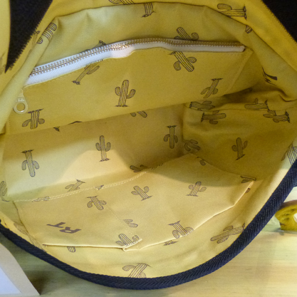 裏地はオリジナルのサボテン柄のリネン生地。