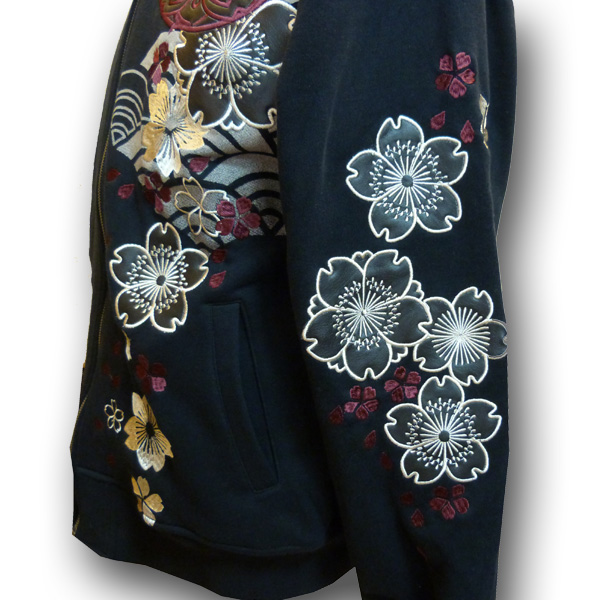 桜を大胆にデザイン、豪華刺繍が見ごたえ十分です。同柄のスウェットパンツとセットアップにもなります。