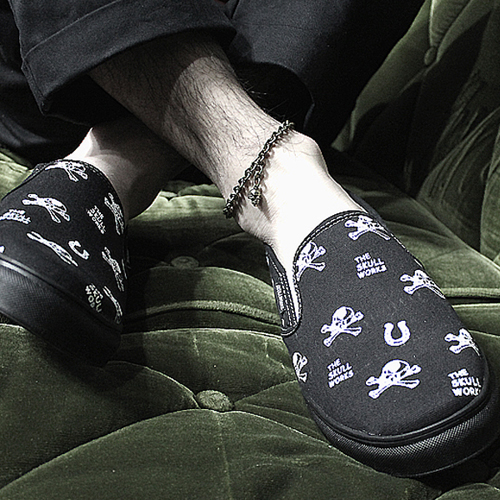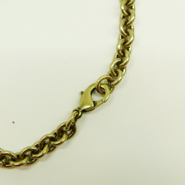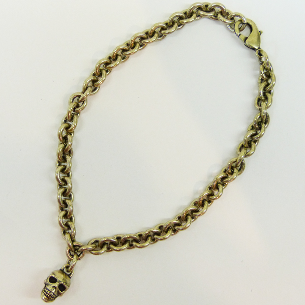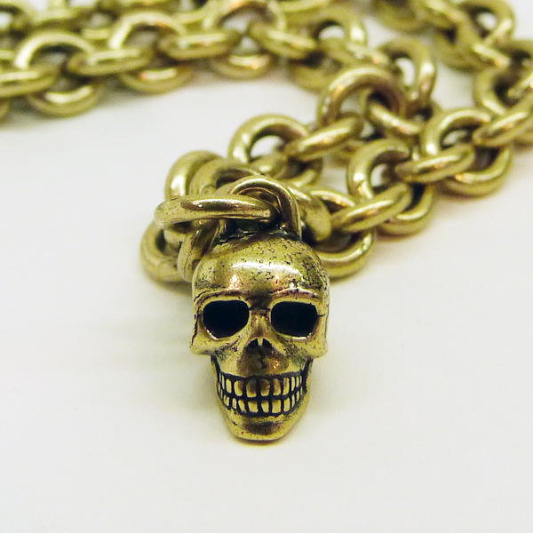 ゴールドの細いチェーンに、立体的なスカルフェイスがひとつついています。