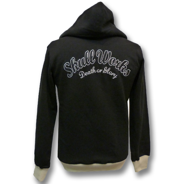 デザインはシンプルに、両胸とバックの刺繍や裾・袖口のリブの切り替えなど、スカジャン的デザインのパーカーです。
