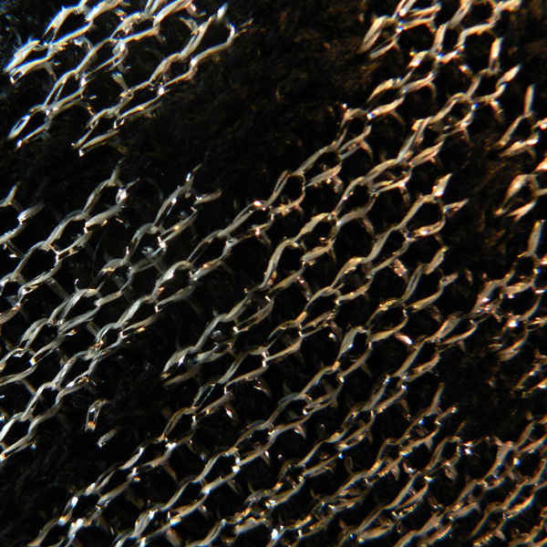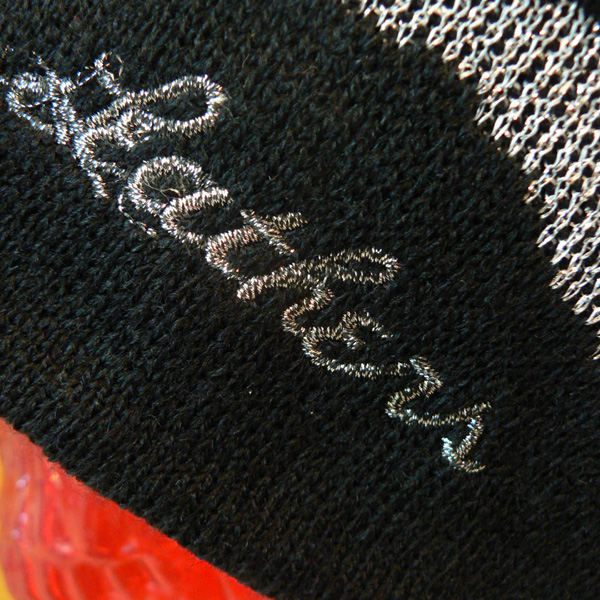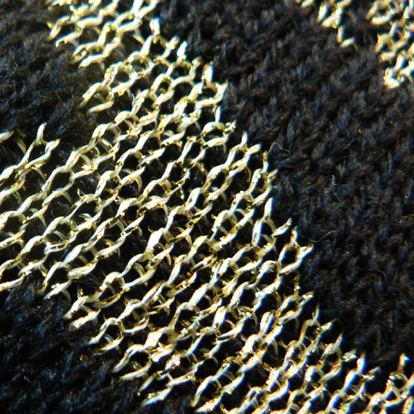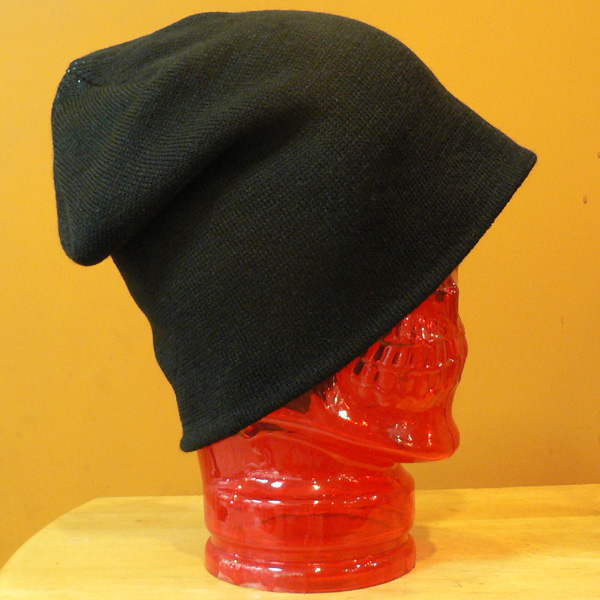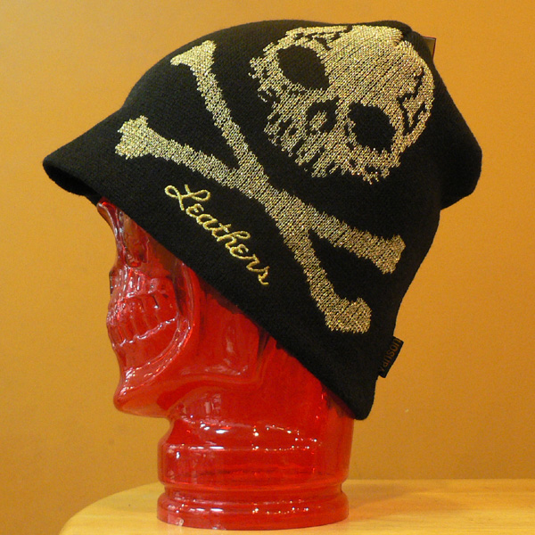 スカルボーンデザインのニットキャップ。スカルボーンの部分はインターシャ織りという特殊な手法で柄をつけ、シルバーとゴールドのラメが印象的です。