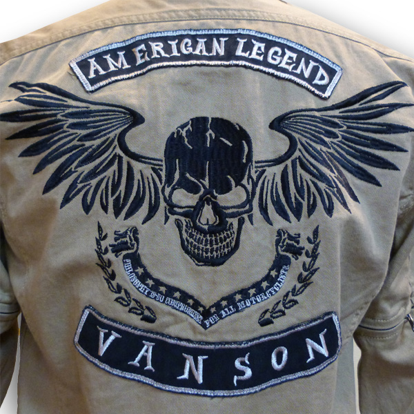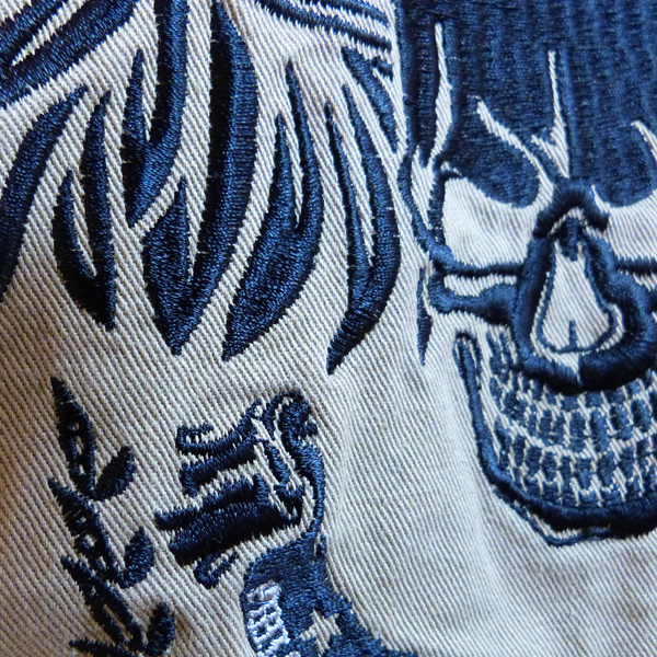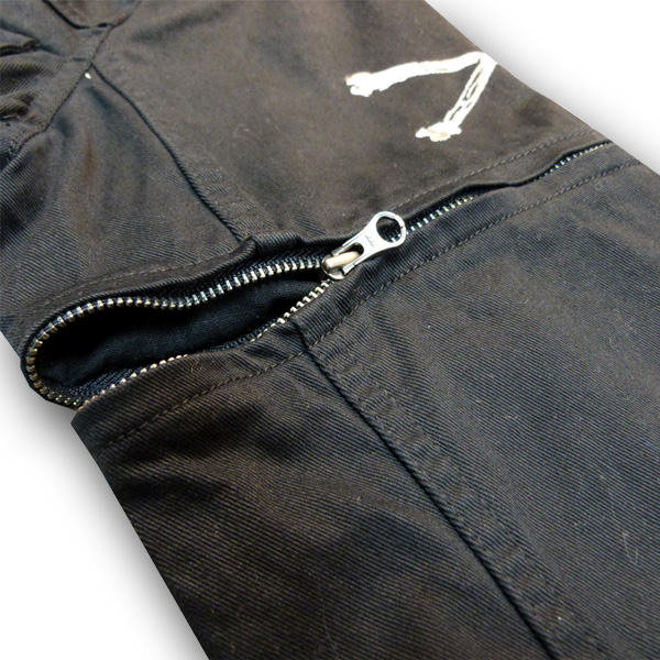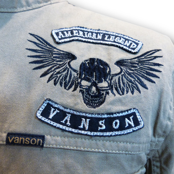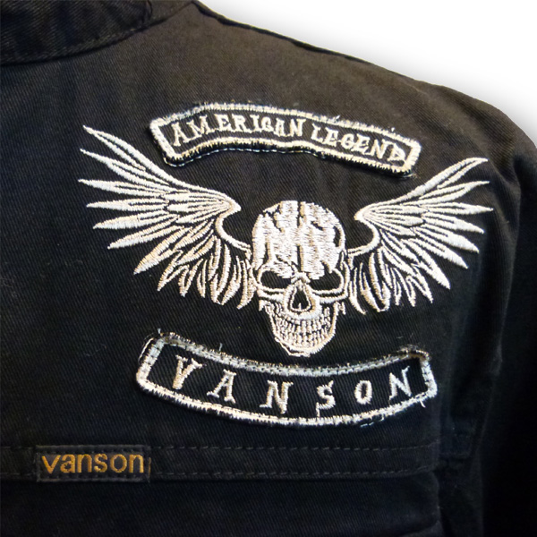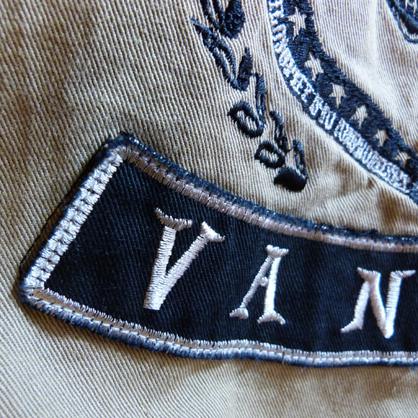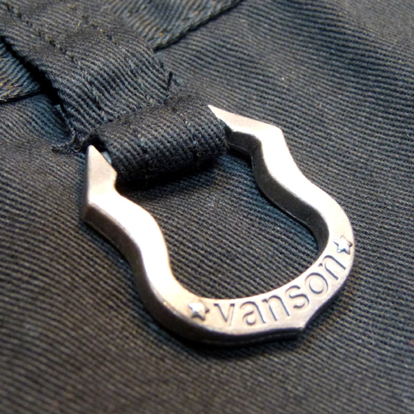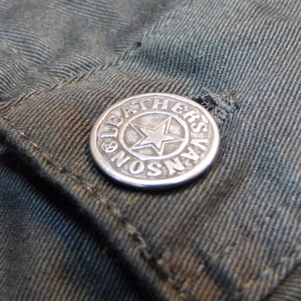 オリジナルのピス、カン、パッチ、ボタン、リベットなど細部までこだわったつくり。